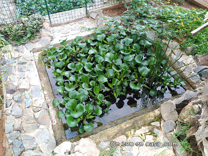 Compartiendo este articulo tomado de la web. Enlace de referencia del sitio de donde es propiedad este articulo:    http://www.unzooencasa.com/2016/11/estanques-con-filtracion-natural-tortugas.html  Autor:  Estanques con filtración natural para tortugas En este artículo pretendo dar unas pequeñas bases de cómo conseguir un estanque con filtración natural, es decir, sin utilizar ni bombas ni filtros de ningún tipo. Tal y como se explica en detalle en el artículo Ciclado del acuario, la calidad del agua depende del siguiente ciclo: Los restos de vegetación muerta, comida de peces o tortugas, y deposiciones de los animales generan amoníaco y amonio. Gracias al trabajo de unas bacterias llamadas Nitrosomonas se convierten estos elementos en Nitritos, que posteriormente gracias a las Nitrobacter son convertidos a su vez en Nitratos. Estos nitratos serán asimilados posteriormente por las plantas o a través de cambios de agua del acuario. Las claves básicas para conseguir una correcta filtración natural son: FAUNA DEL ESTANQUE - Tortugas: Tal y como se ha detallado las tortugas suelen ensuciar bastante. La principal ventaja que nos proporcionan es que pueden alimentarse de los restos de animales muertos y plantas, evitando la generación de más nitratos en un futuro. Hay que tener en cuenta la especie de tortuga que va a albergar el estanque, puesto que sus hábitos y su tamaño nos condicionarán mucho la construcción del estanque. Cuanto mayores sean las tortugas más profundidad y volumen de agua necesitaremos. También debemos tener en cuenta que algunas tortugas, como las de los géneros Pseudemys o Trachemys, pueden alimentarse de las plantas (que a su vez nos interesaría mantener para que realicen la filtración). Otras especies como Emys orbicularis, género Mauremyso Clemmys guttata son menos destructivas y mantienen mucho mejor la vegetación. - Anfibios: Un punto de agua permanente suele atraer a los anfibios a corto plazo. Ranas y sapos serán los primeros en llegar al estanque, y con suerte se reproducirán de forma habitual. Los adultos se encargarán de eliminar las molestas moscas y mosquitos en verano (por ejemplo), y las larvas son verdaderas devoradoras de detritus y larvas de insectos. - Peces: Es imprescindible la presencia de peces en el estanque. Estos animales serán los encargados de eliminar los restos de comida de las tortugas y de eliminar los cientos de larvas de mosquitos y otros insectos que irán a criar en el estanque. Existen muchos tipos de peces adecuados para el estanque; desde los conocidos carpines dorados o goldfish (Carassius auratus), especies resistentes de Corydoras, neones chinos, los ya prohibidos kois o gambusias, o incluso especies autóctonas que  - Insectos acuáticos y moluscos: Con el tiempo iremos descubriendo que nuestro estanque se llena de vida. Aparecerán pequeños caracoles acuáticos (como Lymnaea o Planorbarius), insectos acuáticos, larvas de libélulas, ... Estos animales también serán útiles para eliminar restos de comida, restos de animales e incluso las algas adheridas a las paredes o rocas. PLANTAS FILTRADORAS Las plantas sumergidas también serán grandes filtradoras, y además oxigenarán el agua mejorando la vida de los peces. Algunos ejemplos pueden ser la cola de zorro, vallisneria, egeria, cabomba, ... muchas de ellas ya muy conocidas en el mundo de la acuariofilia. En el caso de la cola de zorro (Ceratophyllum demersum) cabe destacar que no necesita estar plantada en el fondo, por lo que puede dejarse flotando en el estanque. Los nenúfares son plantas que tienen las raíces en el fondo lodoso pero que mantienen las hojas flotando en el agua. A parte de filtrar los nitratos a través de sus raíces también serán de gran ayuda sus grandes hojas para que los animales se sientan más cómodos y resguardados y para evitar el calentamiento excesivo del agua en verano, puesto que parará los rayos del sol. Las plantas flotantes son también muy utilizadas. En esta caso la raíz no llega al fondo. Exactamente como los nenúfares nos servirán para filtrar y evitar el calentamiento excesivo. Las más comunes suelen ser las lentejas de agua, salvinia, azolla, jacinto de agua o lechuga de agua. Finalmente separaremos los estanques con filtración natural en dos grupos: ESTANQUES COMPLETOS ESTANQUES DIVIDIDOS Para finalizar el artículo me gustaría destacar algunos aspectos a tener en cuenta: 1- Un estanque con filtración natural será un gran lugar donde la fauna autóctona puede vivir y reproducirse. Por lo tanto puede ser muy útil para reforzar las poblaciones de anfibios. 2- En el caso de albergar fauna o flora procedentes de otras partes del mundo debemos asegurarnos de que no puedan acabar en nuestros cursos de agua. Muchas de estas especies son invasoras y pueden provocar grandes problemas medioambientales 3- Muchas de las plantas recomendadas en condiciones óptimas pueden criar y ocupar rápidamente todo el estanque. Es importante ir eliminando parte de las plantas para evitar la saturación del estanque, que puede resultar perjudicial para los animales. 4- Antes de introducir animales debemos informarnos bien de que sean adecuados para el tamaño del estanque y para el lugar donde estarán, puesto que deben poder soportar las temperaturas durante todo el año. 5- Los animales deberán introducirse de forma gradual. De esta forma las bacterias y flora del estanque se irán adaptando a las nuevas emisiones de amoníaco y amonio. 6- En el caso de mantener el estanque con mucha vegetación deberemos tener en cuenta que los animales no serán tan visibles como en un estanque con pocas plantas y con filtración mecánica. Por contrapartida las tortugas se mantienen mucho mejor (tienen más lugares donde ocultarse), tienen más alimentación vegetal a su alcance y se genera un microhábitat más completo con un mayor número de anfibios e invertebrados, además de más zona
