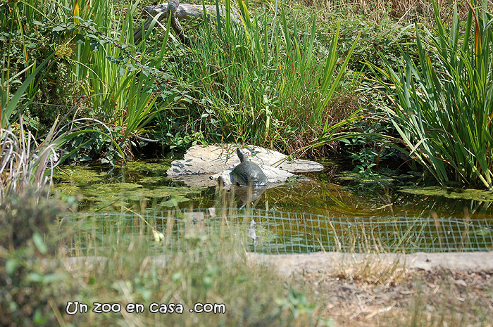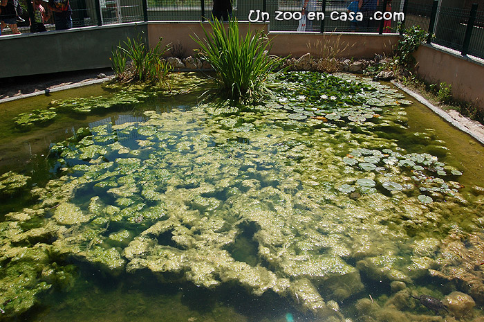 Para evitar que las tortugas tengan acceso a las plantas y puedan devorarlas se recomienda la construcción de un estanque dividido. En este caso se dividirá mediante una malla una parte del estanque donde habitarán las tortugas, y en el resto del estanque podremos mantener todo tipo de plantas y peces que mantendrán el agua siempre limpia.